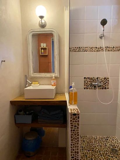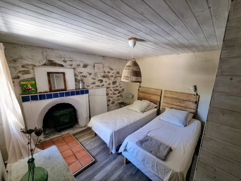 cuisine toute équipée; machines à laver le linge et la vaisselle, four multifonction etc.. Une ou deux chambres (sur demande) avec des lits simples ou double (sur demande), une salle de séjour avec un canapé lit, poêle à bois, télé TNT, Wii, la salle de bain avec douche à l'italienne en petits galets, le tout chauffé et climatisé. terrasse semi-ouverte avec accès privée à la rivière et au four à pain, accès internet wifi GRATUIT.